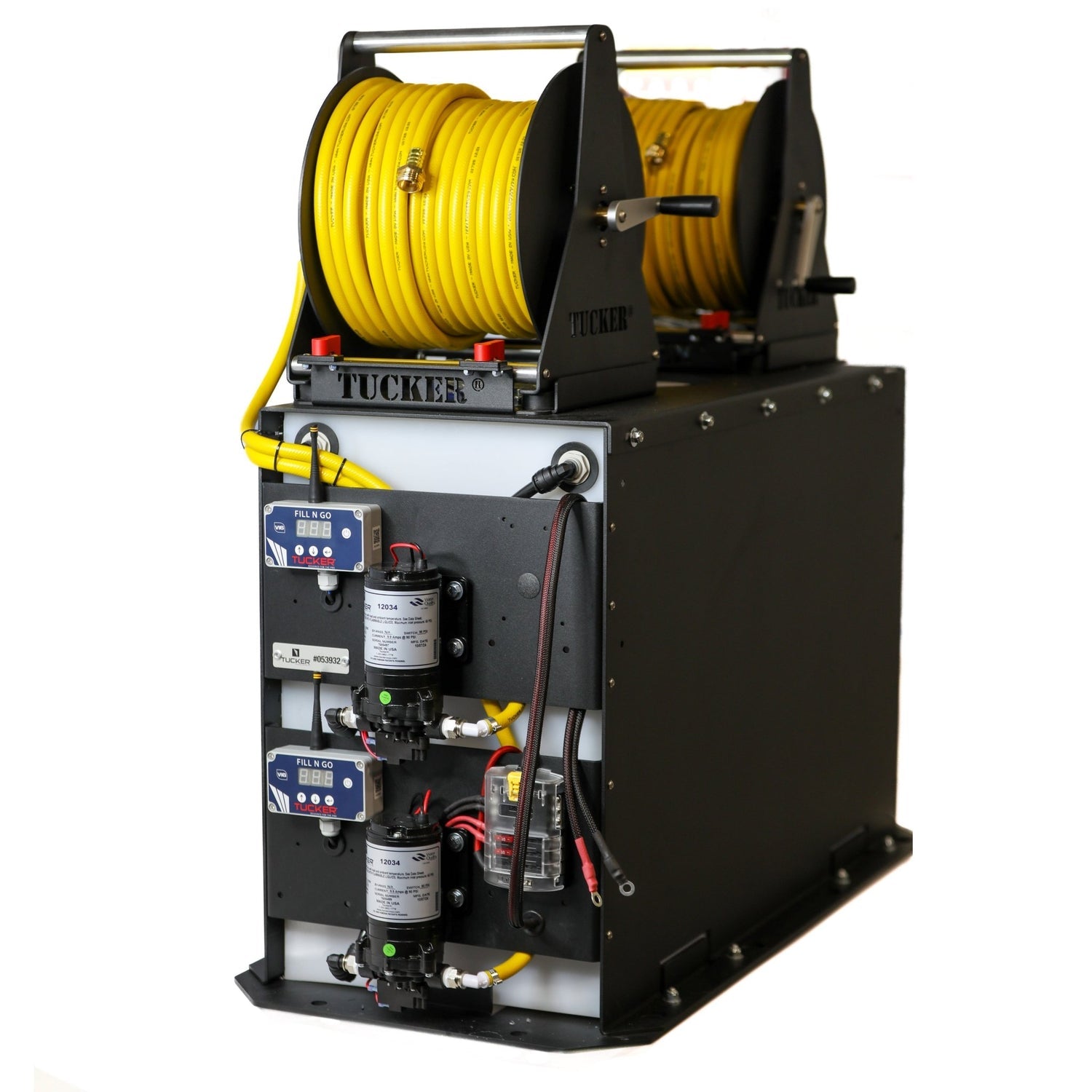 | Dual-Pump System | 2 digital flow controllers | 2 × 150' Tucker® reels | 2 × 12V pumps (remote operated) | Multi-user or commercial jobsites |