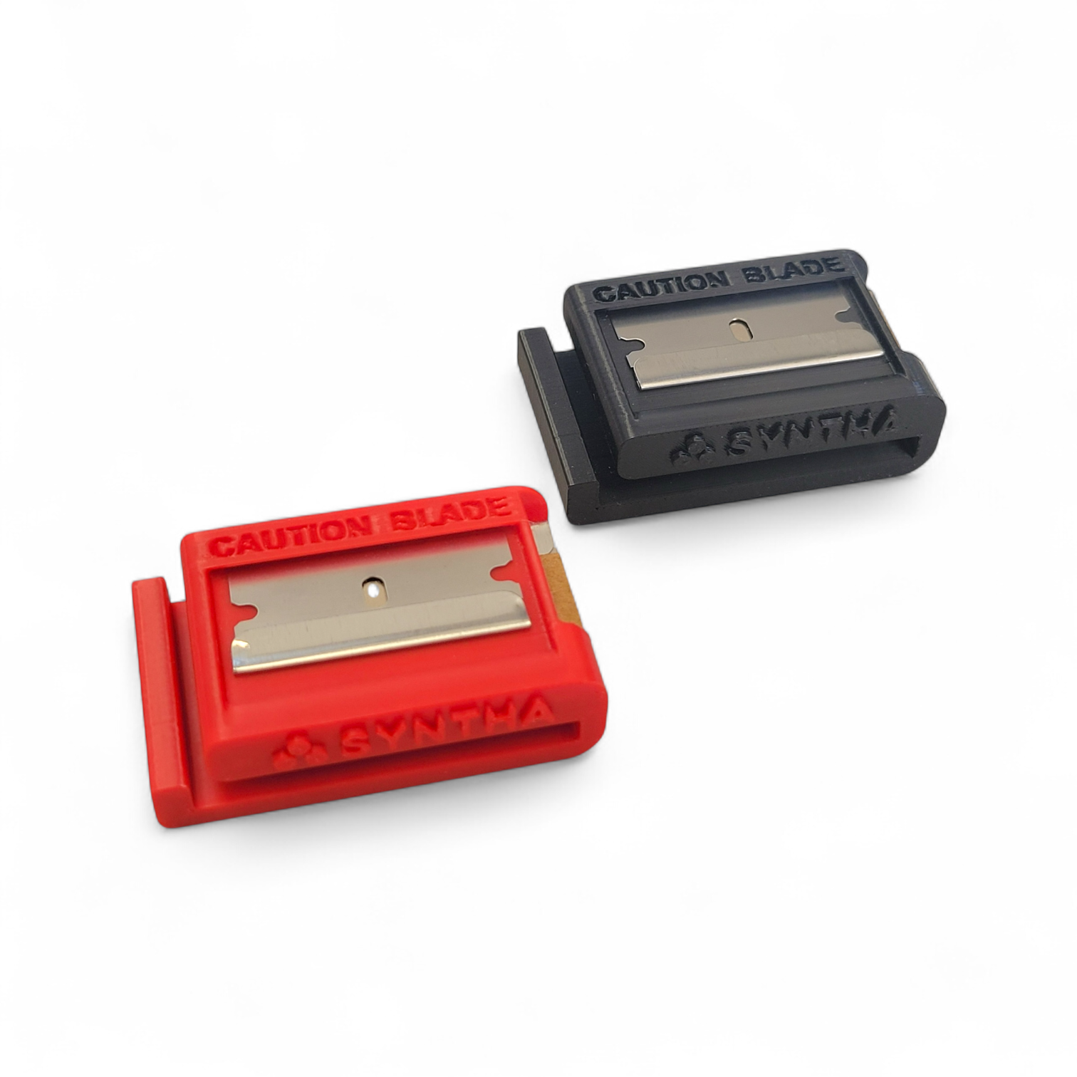 The Syntha Blade Holder is a purpose-built magnetic holster designed to give professionals fast, safe access to 2.5-inch safety razor blades. Engineered for efficiency and security, this compact holder uses a central magnet to keep a blade firmly in place while allowing for quick one-handed retrieval. A safety lip shields the sharp edge, while a rounded notch on the opposite side lets users easily slide a fingernail beneath the blade’s dull edge for quick reholstering. Ideal for window cleaning, detailing, or any task that requires frequent blade access without compromising safety.